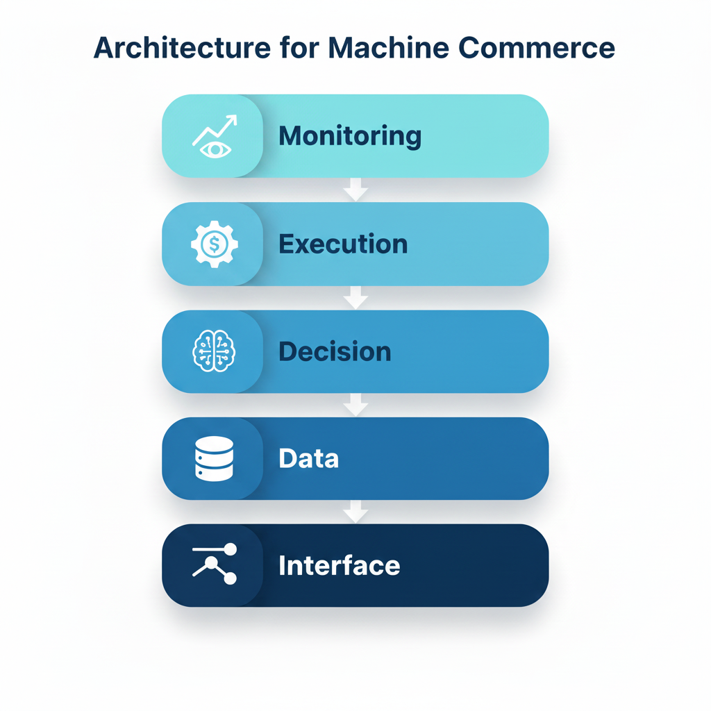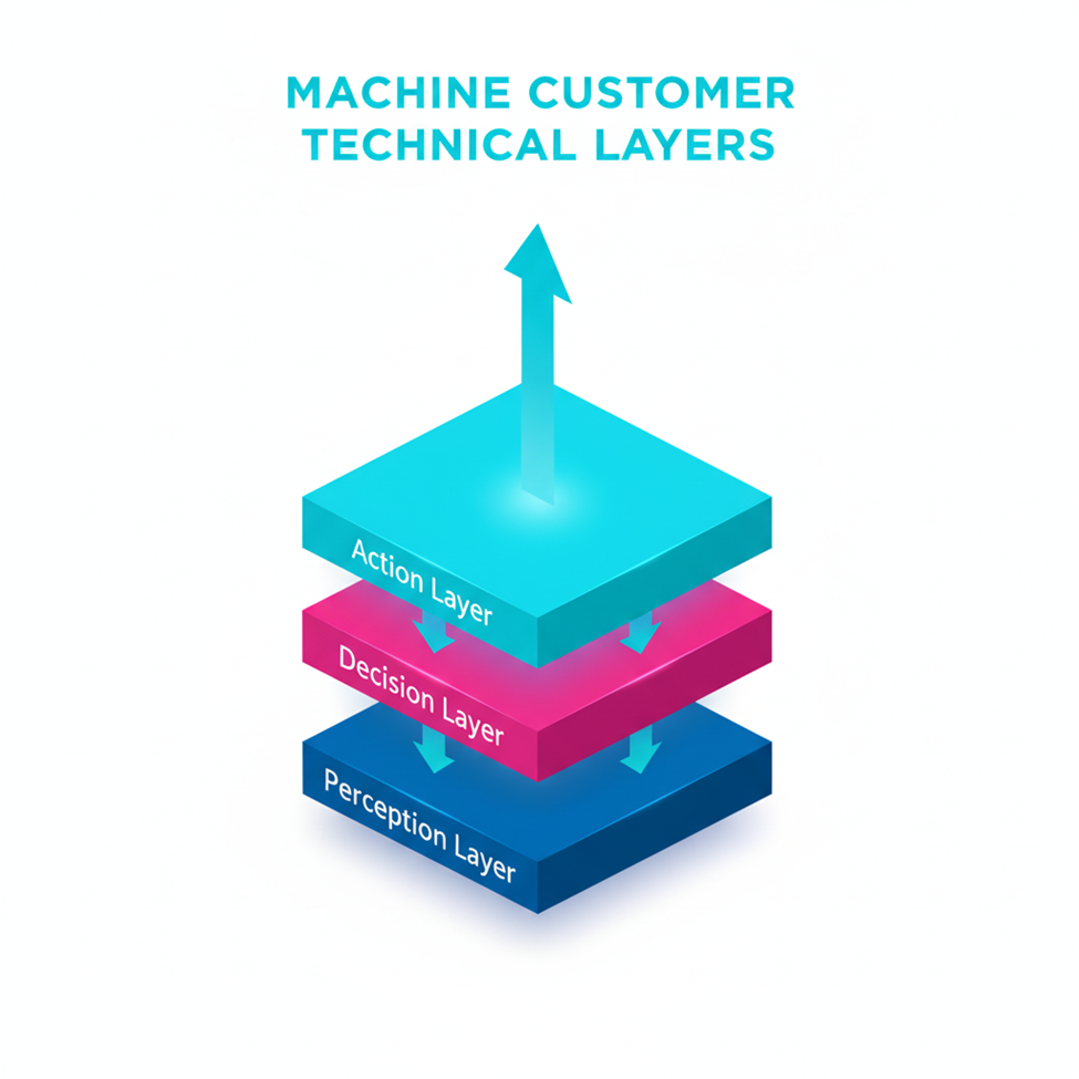 This layered approach allows machine customers to see, think, and act autonomously while continuously learning from outcomes to improve future decisions.